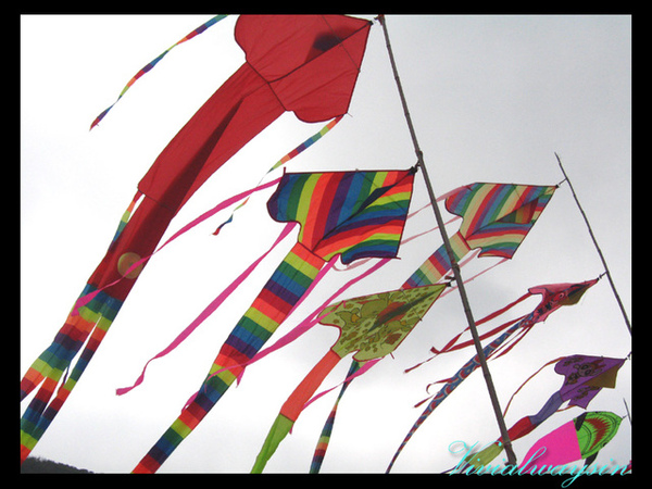 接近中午的時候,攤販開始進駐,這裡的風箏都好漂亮,跟台北市的小小醜風箏真是天差地遠。