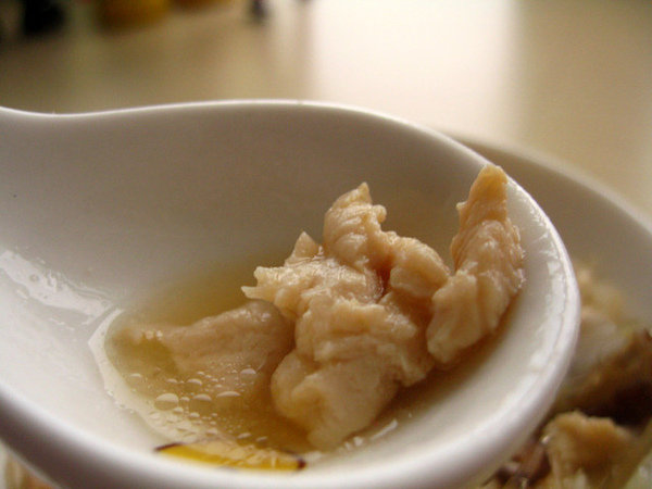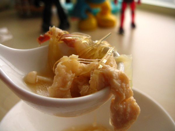 這個是真翅,膠質非常夠,整鍋湯一冷都變果凍了,真是很黏嘴