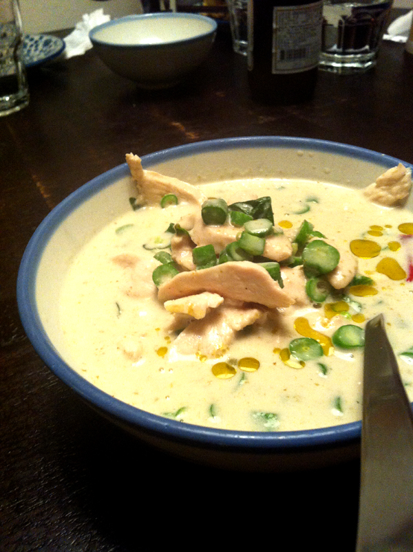 外國顧問不大能吃辣,所以菜單上不辣的幾乎都被點光了。這是綠咖哩椰汁雞,雖然做成小辣,但對於外國人來說還是辣。