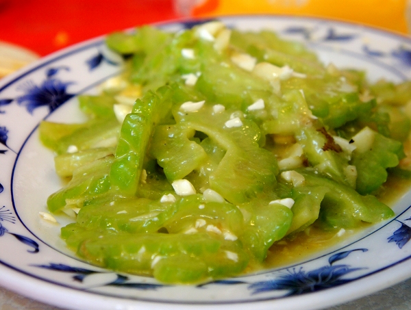 鹹蛋苦瓜,老闆還送了炒地瓜葉。吃一吃沒想到魚皮忘了拍,炒魚皮相當好吃。