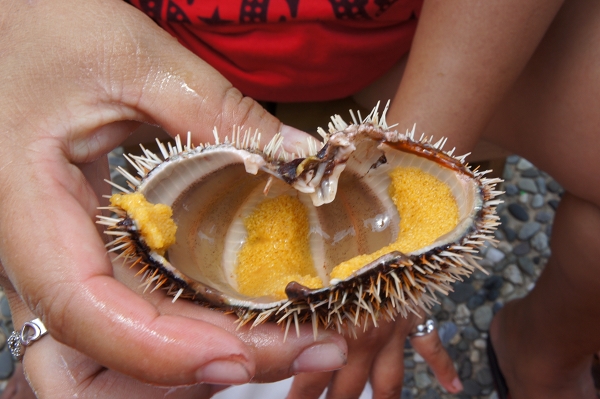 小朋友還想帶回家養,但老闆娘說應該養不起來,我也不想自己處理,所以就嚐嚐鮮就好。若是喜歡的話,老闆娘也可以現取一盒讓你帶回家做海膽炒飯。