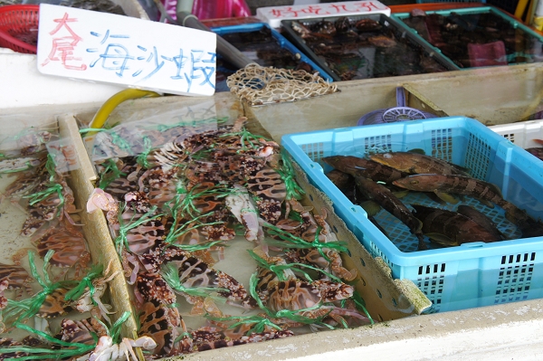 沙蝦一斤$200,據我經驗是可以殺到$160-180,但今天的個頭都不大。