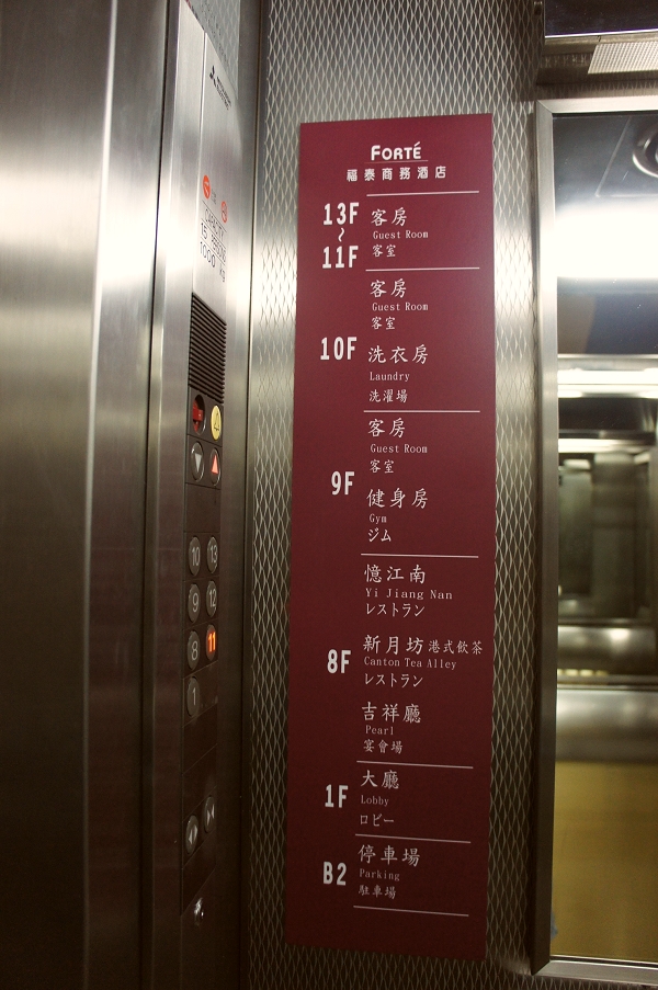拿好房卡之後,我們進了電梯。上面有樓層指示,很清楚,不會跑錯地方。我們最關心的當然是餐廳的所在地囉。
