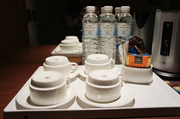 礦泉水跟咖啡,茶包都弄好好的,可是外面東西太好吃了,我們都沒碰耶。對於商務客人真的很方便,還有電熱水壺,可以快速煮好熱水。