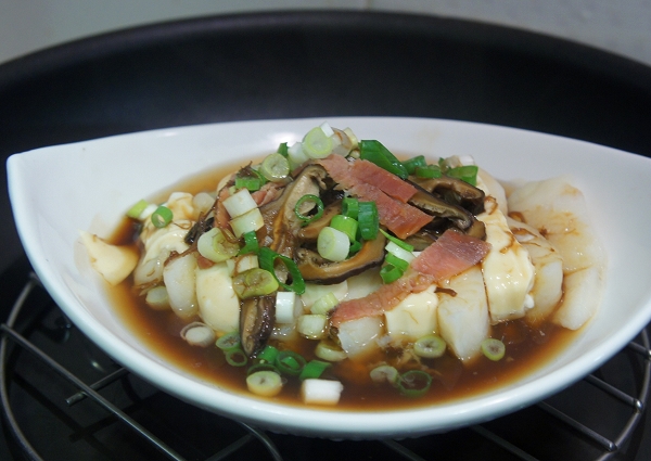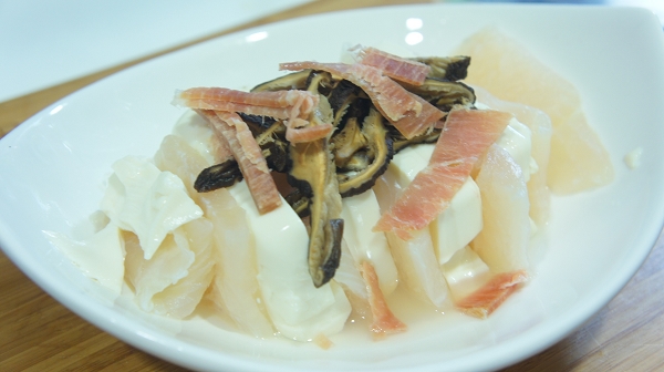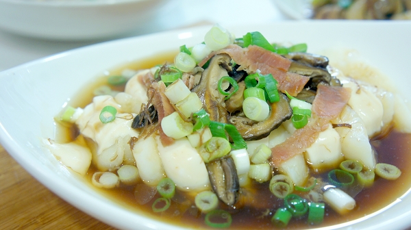 這道蒸魚片豆腐是學第一飯店鐵板燒師傅做的。