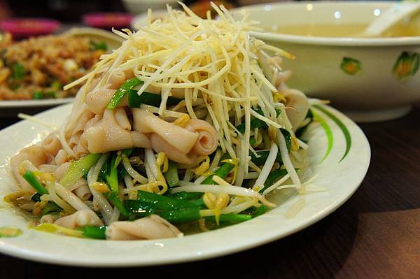 鵝腸韭菜,墊了好多好多豆芽菜,沾上鮮美的鵝汁高湯,成為盤中的亮點,我舀了好幾碗來吃,脆脆的口感超好的,搭配上少許薑絲,簡單中帶著豐富的滋味。