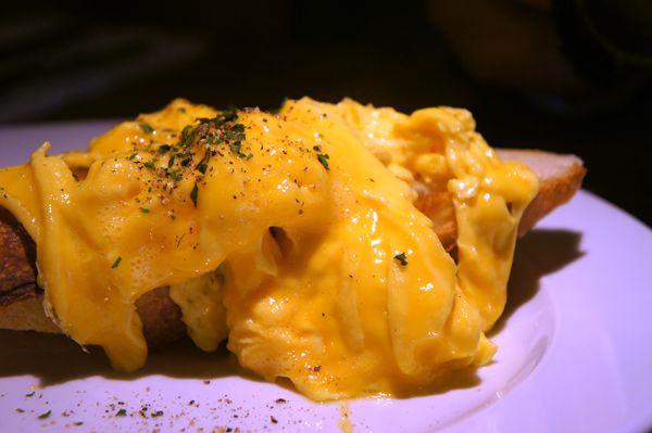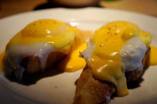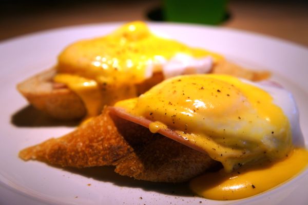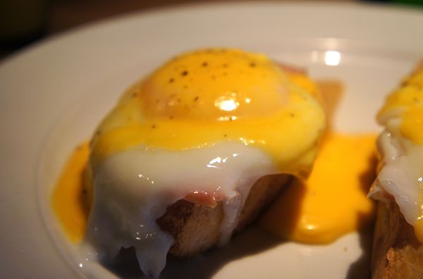 班乃迪克蛋上桌,荷蘭醬的顏色比較深,味道也稍微酸一些。
