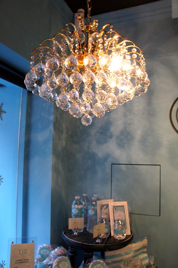 特別的裝潢引起許多路人來研究,我們趕快進到裡面。水晶吊燈下,就是大大的品牌LOGO。