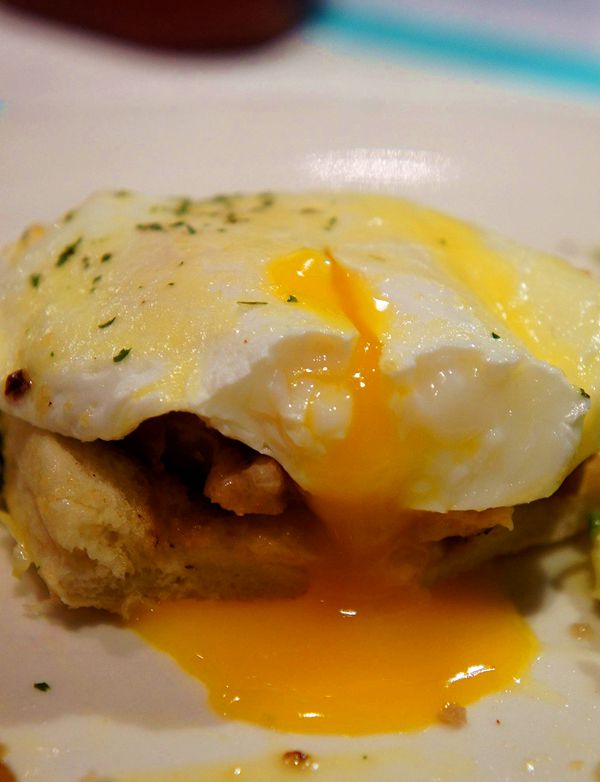 戳開半熟蛋的一刻值千金,看著金黃色的汁液緩緩流瀉,配上一口德國香腸,一口馬芬的澱粉感,感覺一年的辛勞跟一肚子苦水都在舌尖消逝。溫暖的食物真是有著撫慰人心的功用。
