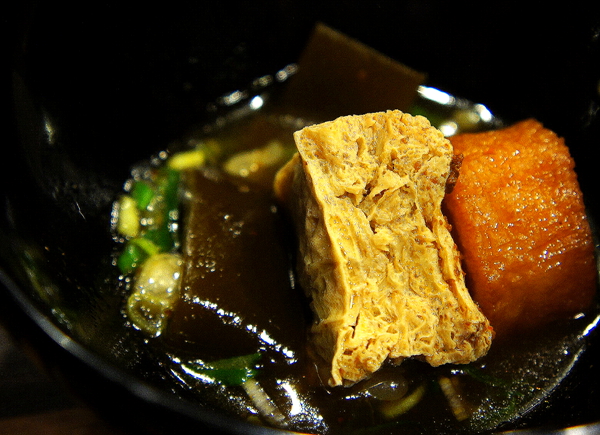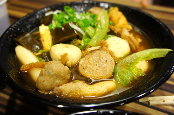 這碗裡面有更多的食材,每一種都好好吃喔,看看這豆干的氣孔,就知道入味的程度了