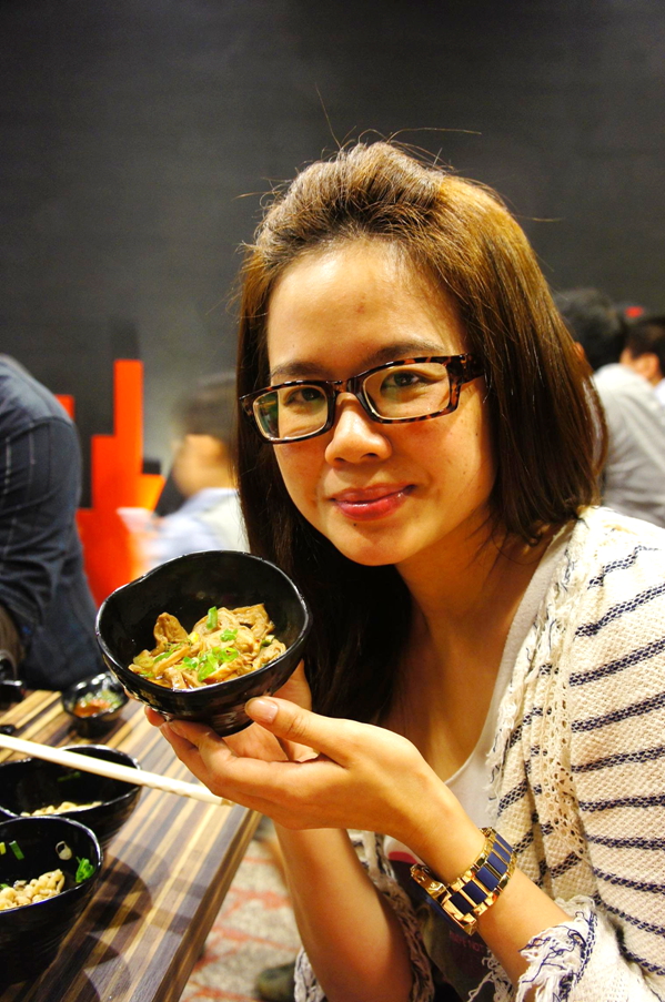 看看這位美麗人妻手上捧的這碗,就是剛剛吃了覺得超級讚的大腸,又加點了啊