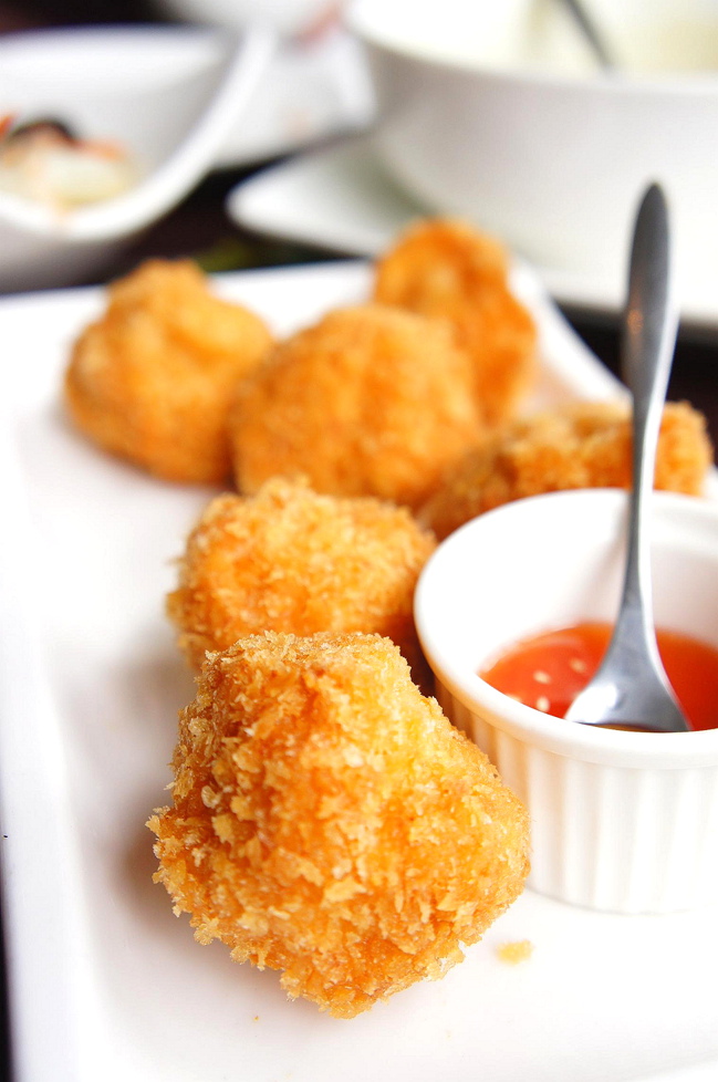 前菜是黃金蝦餅,跟湄河的金錢蝦餅類似。是泰國的正統吃法。