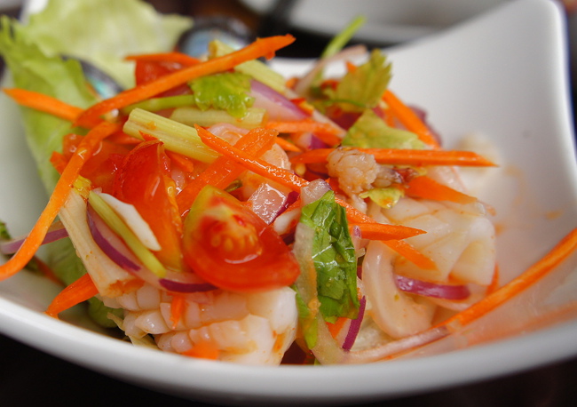 泰式海鮮沙拉。酸香好吃。孔雀蛤很大顆。