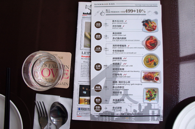 NT$499+10%,包含沙拉,前菜,三主菜,時蔬,甜點,當然還有泰國香米飯。