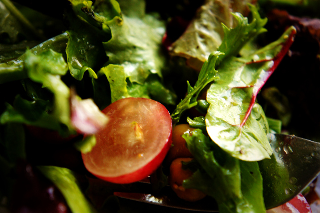 然後加上了紅葡萄,葡萄汁也會自然地融入沙拉中,口感香甜好吃。