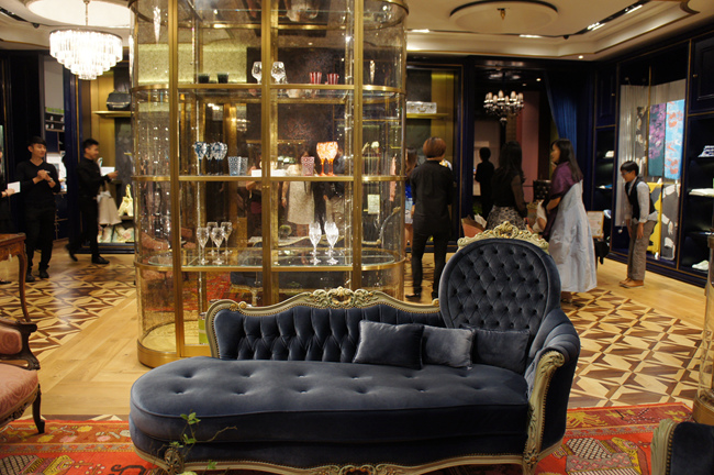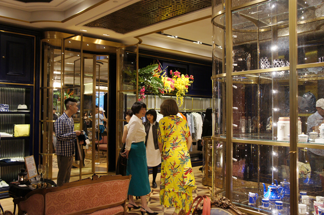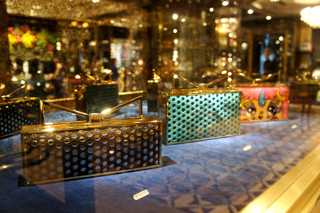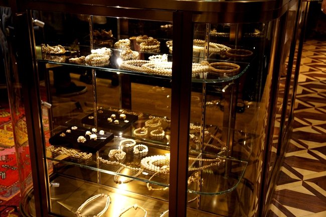 華麗的地磚,搭配著大型金屬玻璃櫃,營造出閃亮奢華感。
