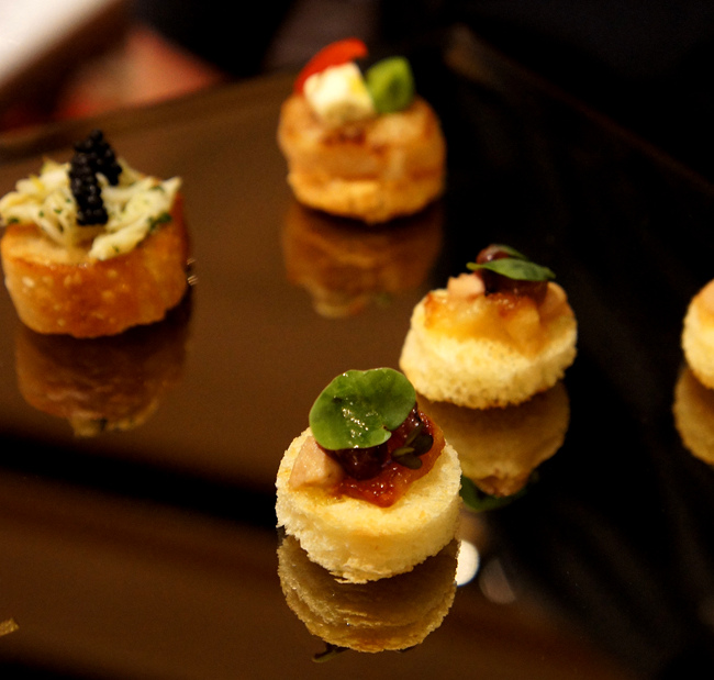 山蘭居的Finger food 也遊走全場,我特別喜歡鵝肝醬搭配新鮮無花果,還有蟹肉魚子醬。