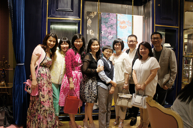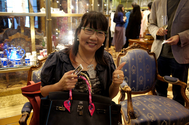 入口處,特別安排了山蘭居的外燴服務,進來的賓客可以拿杯香檳,慢慢的欣賞最新的服飾與配件,感覺好像是在美國Saks Fifth Ave VIP的規格喔。(Saks 試衣服的時候,就會有香檳喝呢,美國人對於物質的服務與享受真是遠遠超過我們啊)