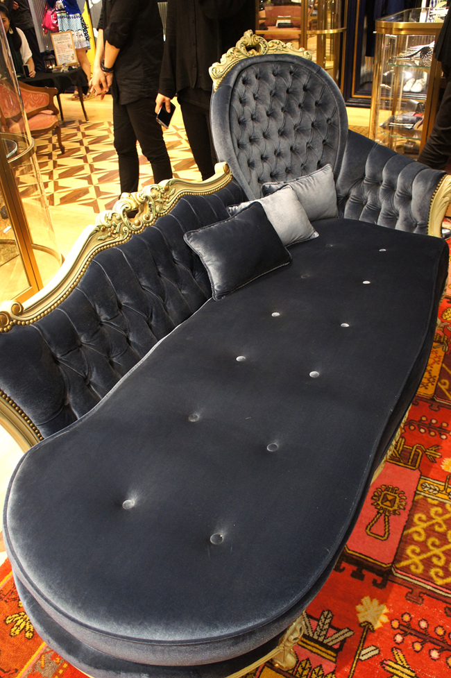 這張法式古典的貴妃椅非常大器。是全場注目的焦點,坐在上面的客人舒服的不想離開了。